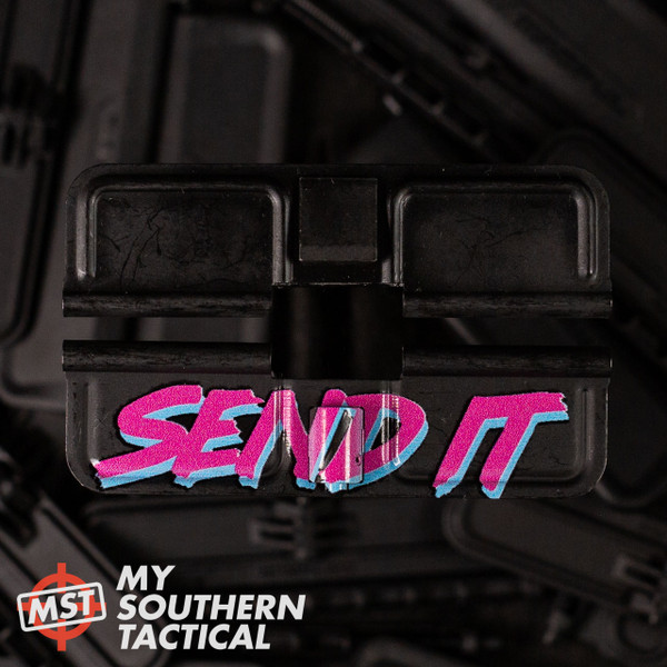 Custom steel ejection port dust cover for use in DPMS 308 AR-10 rifles and pistols.. Design has been professionally applied to the cover for a vivid and durable finish.