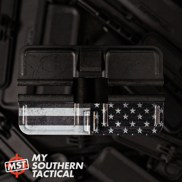 Custom steel ejection port dust cover for use in Mil-spec AR-15 rifles and pistols. Design has been professionally applied to the cover for a vivid and durable finish.